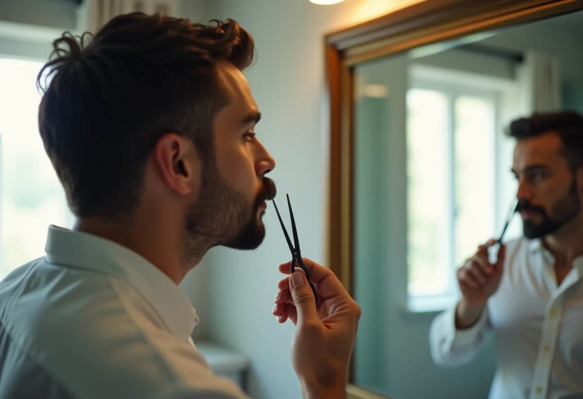 Une moustache mal taillée peut rapidement devenir asymétrique. Utilisez un miroir grossissant et un bon éclairage pour vérifier chaque côté. Pour éviter les erreurs :