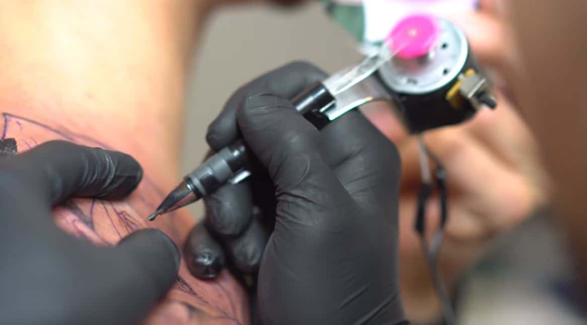 5. En utilisant la machine, le tatoueur va d’abord tracer le contour du tatouage, puis ajouter de la couleur et de l’ombrage.